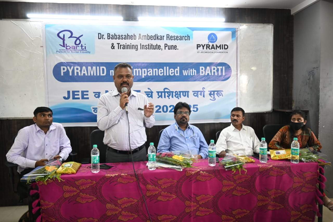 जिद्द,मेहनत व अभ्यास ही त्रिसूत्री अंमलात आणून विद्यार्थ्यांनी यश संपादन करावे.बार्टी ही संस्था नेहमी विद्यार्थी हितासाठी कटिबद्ध आहे असे प्रतिपादन श्री रितेश गोंडाने यांनी उद्घाटन कार्यक्रमात बोलताना केले.कार्यक्रमाच्या प्रसंगी JEE व NEET प्रशिक्षणासाठी निवड झालेले विद्यार्थी,पालक तसेच शिकवणी वर्गातील शिक्षकवृंद उपस्थित होते.