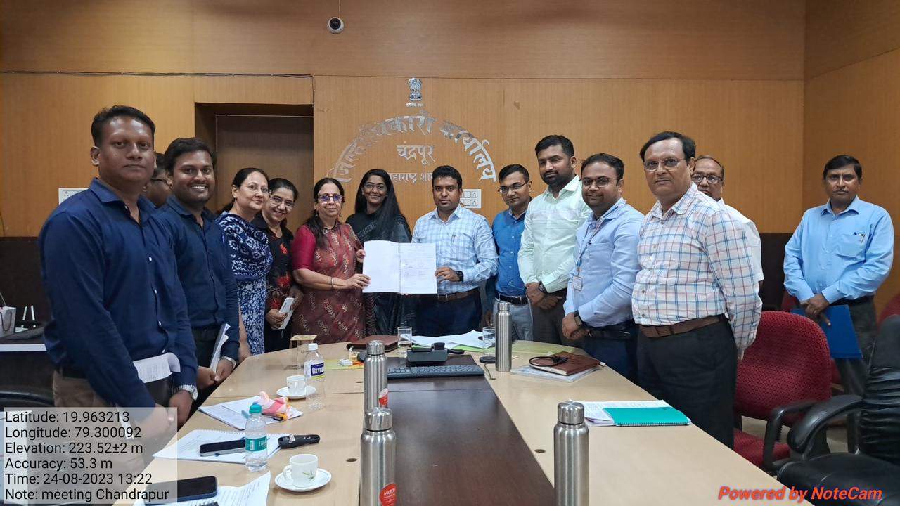 सदरील बैठकीत चंद्रपूर जिल्ह्यातील महत्त्वाच्या विषयांवर सादरीकरण करण्यात आले. तसेच जिल्हाधिकारी कार्यालयाच्या वतीने मुख्यमंत्री फेलो सिद्धार्थ देशमुख यांनी सादरीकरण केले.