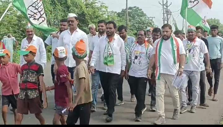 अखिल भारतीय राष्ट्रीय काँग्रेसचे जननायक खासदार राहुलजी गांधी यांच्या भारत जोडो पदयात्रेच्या धर्तीवर महाराष्ट्र प्रदेश काँग्रेसचे प्रदेशाध्यक्ष आ. नानाभाऊ पटोले यांच्या निर्देशानुसार चंद्रपूर जिल्हा काँग्रेस कमिटीचे जिल्हाध्यक्ष राजुरा विधानसभा क्षेत्राचे लोकप्रिय आमदार मा.श्री. सुभाषभाऊ धोटे यांचे मार्गदर्शनाखाली गोंडपिपरी काँग्रेसच्या वतीने तालुक्यातील खराळपेठ गावापासून जनसंवाद पदयात्रेला सुरुवात झाली.दरम्यान गोंडपिपरी तालुक्यातील जनसंवाद पदयात्रेचा शुभारंभ राजुराचे माजी नगराध्यक्ष, तथा विधानसभा समन्वयक अरुणभाऊ धोटे यांचे नेतृत्वात करण्यात आला. खराळपेठ या गावापासून आज सकाळी ६:००वाजता पदयात्रा निघाली.यात्रेत सहभागी राजुरा नगरपरिषदेचे माजी नगराध्यक्ष अरुणभाऊ धोटे यांनी पदयात्रेत सहभागी झालेल्या कार्यकर्त्यांसह पदयात्रा नियोजित मार्गावरील गावोगावी व गावातील नागरिकांची संवाद साधला. तालुक्यातील खराळपेठ, चेकबोरगाव,बोरगाव धानापूर, करंजी, आक्सापुर असा २५ किलोमीटर प्रवास करीत ठिकठिकाणी देशाचे केंद्र सरकार, राज्यातील शिंदे सरकार यांचे धोरणे महागाई,भ्रष्टाचारी, बेरोजगारी, अन्याय,अत्याचार याबद्दल जनजागृती करणारे परिपत्रके वाटून, याबद्दल जनजागृती करणाऱ्या नारे, कारण सभा घेवून नागरिकांशी थेट संवाद साधण्यात आला.