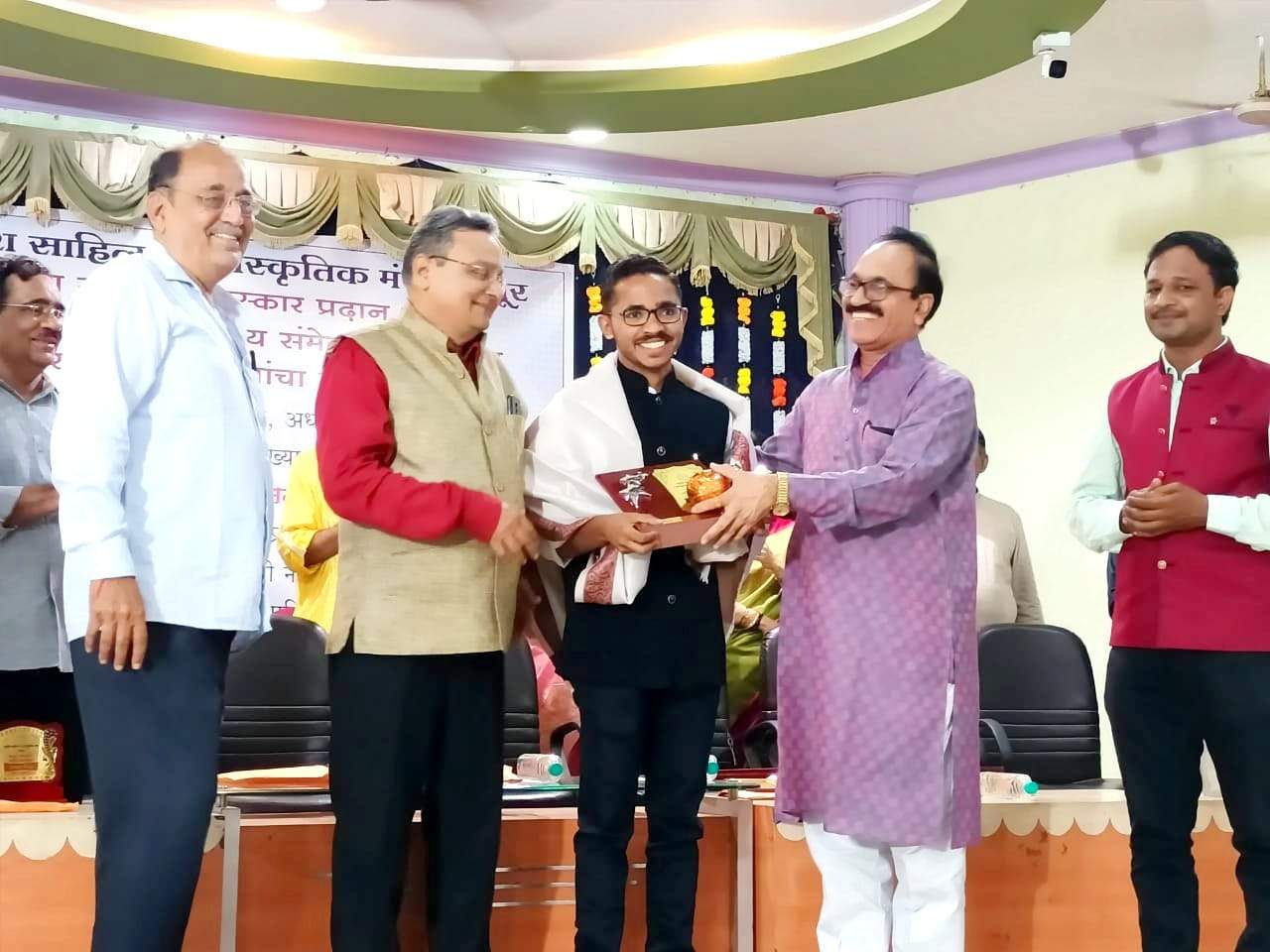 चंद्रपूर: सुर्यांश साहित्य व सांस्कृतिक मंच, चंद्रपूर यांच्याकडून राज्यस्तरीय साहित्य पुरस्कार प्रदान सोहळा सरदार पटेल महाविद्यालय, चंद्रपूर येथे रविवार, दि. ३ सप्टेंबर २०२३ रोजी उत्साहात पार पडला. यामध्ये युवा साहित्यिक, कवी, लेखक सुरज पी. दहागावकर यांना ९७ व्या अखिल भारतीय मराठी साहित्य संमेलनाचे अध्यक्ष डॉ. रविंद्र शोभणे यांच्या शुभहस्ते “सुर्यांश नवोन्मेष पुरस्कार” देऊन सन्मानित करण्यात आले.
