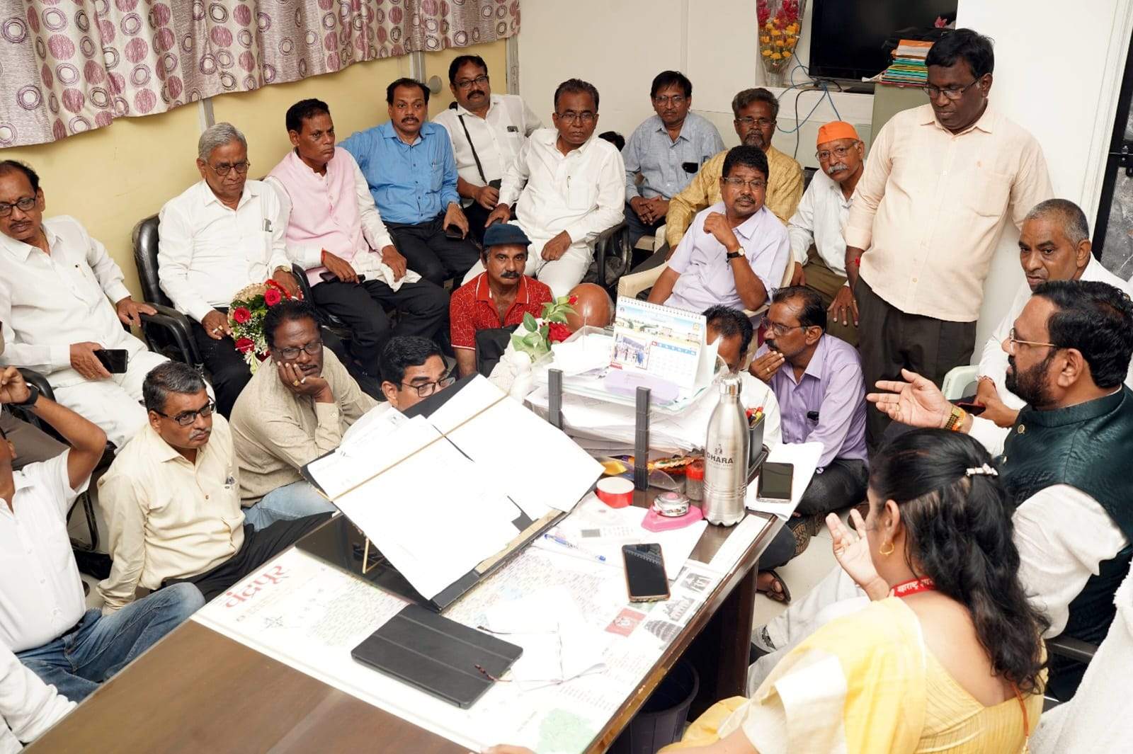 जिल्ह्यातील खासगी अनुदानित माध्यमिक, उच्च माध्यमिक शाळेतील शिक्षक-शिक्षकेत्तर कर्मचाऱ्यांच्या प्रलंबित समस्या निवारणार्थ २४ मे २०२३ राेजी सहविचार सभा घेण्यात आली होती. त्यात प्रलंबित प्रकरणे निकाली काढण्याचे शिक्षणाधिकारी (माध्य.) यांनी आश्वासन दिले होते. मात्र, अजूनही अनेक प्रकरणे निकाली काढण्यात आलेले नाही. त्यामुळे आमदार सुधाकर अडबाले यांच्या नेतृत्वात विदर्भ माध्यमिक शिक्षक संघाचे पदाधिकारी व समस्याग्रस्त कर्मचाऱ्यांनी शिक्षणाधिकारी (माध्य.) यांच्या कक्षात बैठा सत्याग्रह केला. यावेळी जिल्ह्यातील शिक्षक-शिक्षकेत्तर कर्मचाऱ्यांच्या प्रलंबित समस्यांवर चर्चा करण्यात आली. शिक्षणाधिकारी (माध्य.) कल्पना चव्हाण यांनी २५ सप्टेंबरपर्यंत प्रलंबित प्रकरणे निकाली काढण्याचे आश्वासन दिल्यानंतर सत्याग्रह मागे घेण्यात आला. २५ सप्टेंबरपर्यंत प्रकरणे निकाली न निघाल्यास २ ऑक्टोबरपासून आमरण उपोषण करण्याचा इशारा आमदार सुधाकर अडबाले यांनी दिला. सोबतच शिक्षण विभागात प्रकरणे निकाली काढण्यात अनियमितता होत असल्याने पेंशन केस, मेडीकल बिल, निवड/वरिष्ठ श्रेणी व इतर प्रकरणांचा निपटारा टोकन पध्दतीने करण्यात यावा, असे निर्देश आमदार सुधाकर अडबाले यांनी दिले.