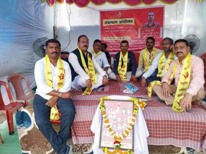 वरोरा : एकीकडे मराठा समाजाला कुणबी समाजाचे सरसकट प्रमाणपत्र देऊन ओबीसींमध्ये मराठा समाजाला समाविष्ठ करण्याकरिता जालन्यात जरांगे पाटलांनी अन्नत्याग आंदोलन केले असून त्याला जोरदार विरोध दर्शविण्यासाठी राष्ट्रीय ओबीसी विद्यार्थी महासंघाचे चंद्रपूर जिल्हाचे जिल्हाध्यक्ष रवींद्र टोंगे यांनी दिनांक ११ सप्टेंबर २०२३ रोज सोमवार पासून जिल्हाधिकारी कार्यालय चंद्रपुर समोर अन्नत्याग आंदोलन सुरू केले आहे.