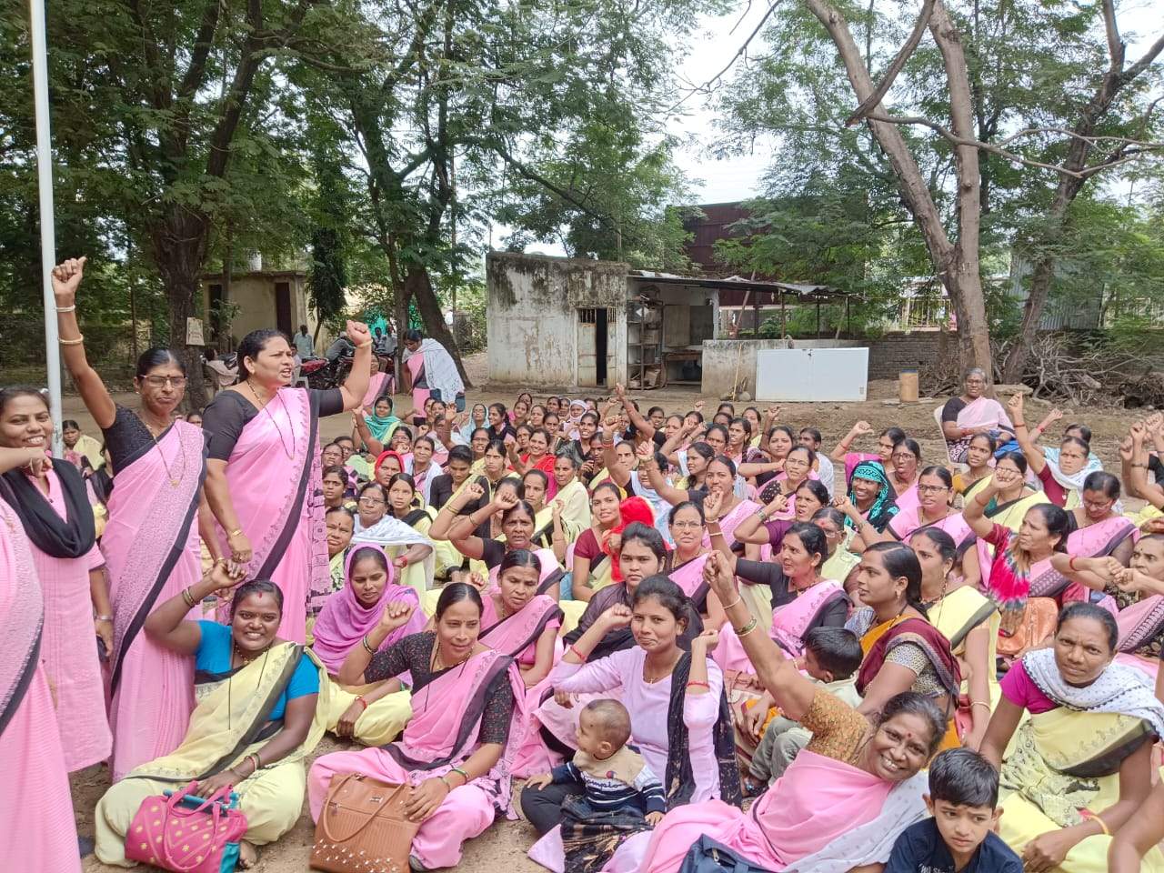 न्याय हक्कासाठी अंगणवाडी सेविका,मदतनीस बेमुदत संपावर