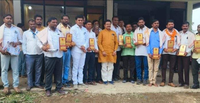 जिवती (ता.प्र.) : मराठी पत्रकार दिनाच्या पार्श्वभूमीवर आज जिवती येथील मा.ना.श्री. सुधीरभाऊ मुनगंटीवार सेवा केंद्रात छोटेखानी कार्यक्रमाचे आयोजन करून राजुरा विधानसभा क्षेत्र प्रमुख देवरावभाऊ भोंगळे यांच्या हस्ते तालुक्यातील पत्रकार दिपक साबने, शंकर चव्हाण, लक्ष्मण मंगाम, सुग्रीव गोतावळे, शबीर जहागीरदार, प्रीतम दुर्गे, शेख सलीम, जमालू शेख, शेख फारुख, संतोष इंद्राळे, गोविंद गोरे, प्रशांत मोरे, श्रीकांत राजपंगे, क्रिष्णा चव्हाण, अनवर खान, शेख हकानी, बळीराम काळे आदी पत्रकार बांधवांचा शाल, श्रीफळ, सन्मानचिन्ह व भेटवस्तू देऊन सन्मान करण्यात आला.