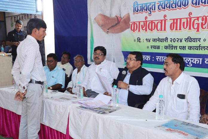 सावली: राज्याचे विरोधी पक्षनेते, तथा ब्रम्हपुरी विधानसभा क्षेत्राचे आमदार विजय वडेट्टीवार यांच्या संकल्पनेतून सर्व सामान्य,गोर-गरिब जनतेचे शासकीय किंवा अशासकीय कामे सोयीचे व्हावे याकरिता ब्रम्हपुरी विधानसभा क्षेत्रात जनसेवा केंद्राची स्थापना होणार आहे. यासाठी विजयदूत स्वयंसेवक यांची नेमणूक करून यांच्या माध्यमातून ही जनसेवेची कामे पार पडणार आहेत. विजय दुतांनी सर्व सामान्य गोरगरीब जनतेचे सेवक बनून कार्य करावे असे प्रतिपादन राज्याचे विरोधी पक्षनेते विजय वडेट्टीवार यांनी केले ते सावली येथील काँग्रेस पक्षाचे जनसंपर्क कार्यालय येथे आयोजित विजयदूत स्वयंसेवक यांची कार्यशाळा व कार्यकर्ता मार्गदर्शन शिबीर प्रसंगी अध्यक्ष म्हणून बोलत होते.