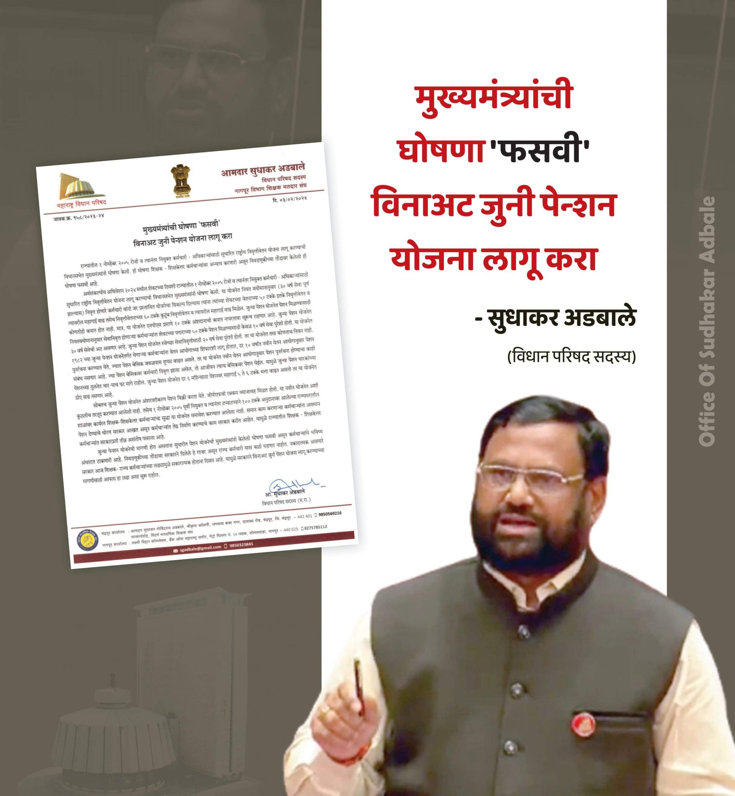 शिक्षक – शिक्षकेत्तर कर्मचारी गेल्‍या अनेक वर्षांपासून जुनी पेंशन योजना लागू करण्याच्‍या मागणीला घेऊन सरकारशी लढा देत आहेत. या लढ्यामुळे राष्ट्रीय निवृत्तीवेतन प्रणाली व जुनी निवृत्तीवेतन योजना यांचा तुलनात्‍मक अभ्यास करण्यासाठी समिती गठीत करण्याबाबत वित्त विभागाचा १४ मार्च २०२३ रोजी शासन निर्णय निर्गमित करण्यात आला होता. समितीचा अहवाल येण्यास आठ महिन्‍यांचा कालावधी लागला. समितीने सरकारला सादर केलेला अहवाल सभागृहात सादर करून जुनी पेंशन योजना लागू करावी, अशी मागणी सातत्‍याने आमदार सुधाकर अडबाले सरकारकडे करीत होते.
