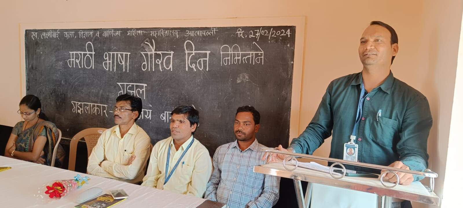 या दिनाचे औचित्य साधून महाविद्यालयात गझलांचा कार्यक्रम आयोजित करण्यात आला होता. या कार्यक्रमाकरिता मुख्य गझलाकार म्हणून प्रा. अजय बारसागडे सर यांनी “मनाचा बंद दरवाजा, पुन्हा उघडायला सांगू”,”हा घोट घेत आहे, हा घास घेत आहे”, “गेले दिवस आंबे चिचाचे, बोरीच्या खाली बोर येचाचे ” अशा विविध गझलांच्या माध्यमातून श्रोत्यांना मंत्रमुग्ध केले.