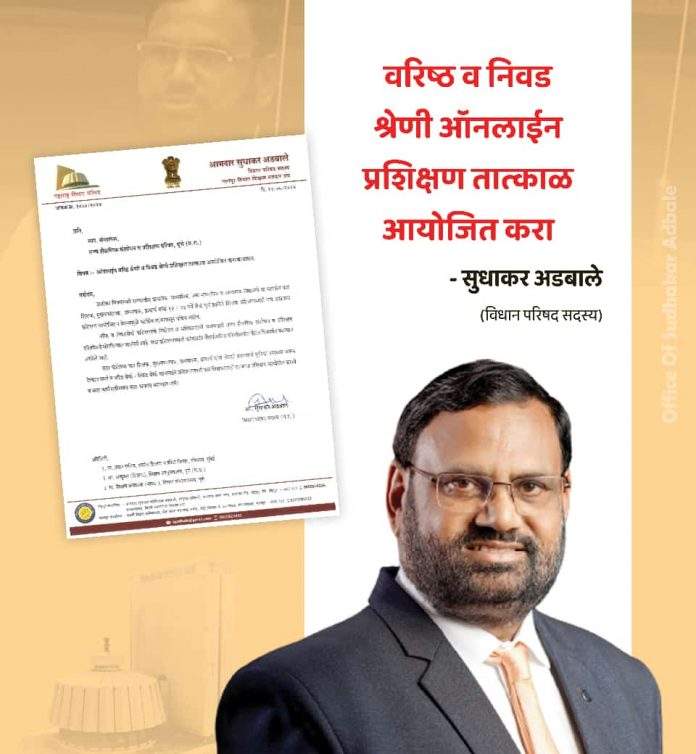 चंद्रपूर : राज्यातील पात्र शिक्षक, मुख्याध्यापक, प्राध्यापक, प्राचार्य यांनी १२ / २४ वर्षे सेवा पूर्ण झालेल्या शिक्षकांसाठी वरिष्ठ श्रेणी व निवड श्रेणी ऑनलाईन प्रशिक्षण तात्काळ आयोजित करावे, अशी मागणी आमदार सुधाकर अडबाले यांनी राज्य शैक्षणिक संशोधन व प्रशिक्षण परिषद, पूणे यांच्याकडे केली आहे.