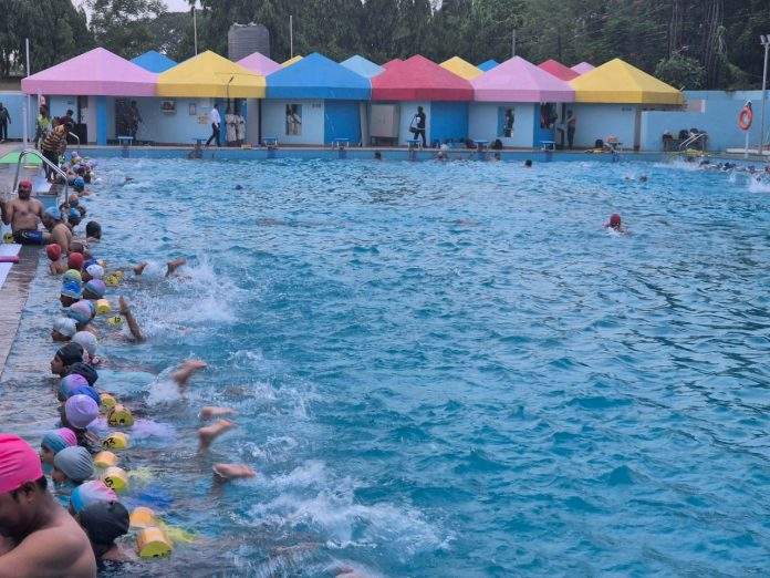 जिल्हा क्रीडा संकुल चंद्रपूर येथील जलतरण तलाव नूतनीकरणाकरिता पालकमंत्री ना. श्री. मुनगंटीवार यांच्या पुढाकारातून जिल्हा नियोजन समिती चंद्रपूर कडून २०२२-२०२३ अंतर्गत नाविन्यपूर्ण योजनेतून एक कोटी ५७ लक्ष रुपयांचा निधी मंजूर करण्यात आला होता. या निधीतून जलतरण तलावातील वॉटरप्रूफिंग, टाइल्स फिल्टरेशन प्लांट, प्रसाधनगृहांच्या दुरुस्तीच्या कामांसह विद्युतीकरण तसेच प्रकाश झोताची व्यवस्था, प्रेक्षक गॅलरी, रेलिंग टेक एरियाची दुरुस्ती इत्यादी कामे हाती घेण्यात आली होती. आता ही कामे पूर्ण झाली असून शहरातील जलतरणपटूंमध्ये आनंदाचे वातावरण आहे. याठिकाणी नियमित सरावासह उन्हाळी प्रशिक्षण शिबिरांचे देखील आयोजन करण्यात येत आहे. विशेष म्हणजे दररोज चारशे खेळाडू याठिकाणी प्रशिक्षणाचा लाभ घेत असून नियमित सराव करणाऱ्या जलतरणपटूंची गर्दी देखील वाढली आहे.