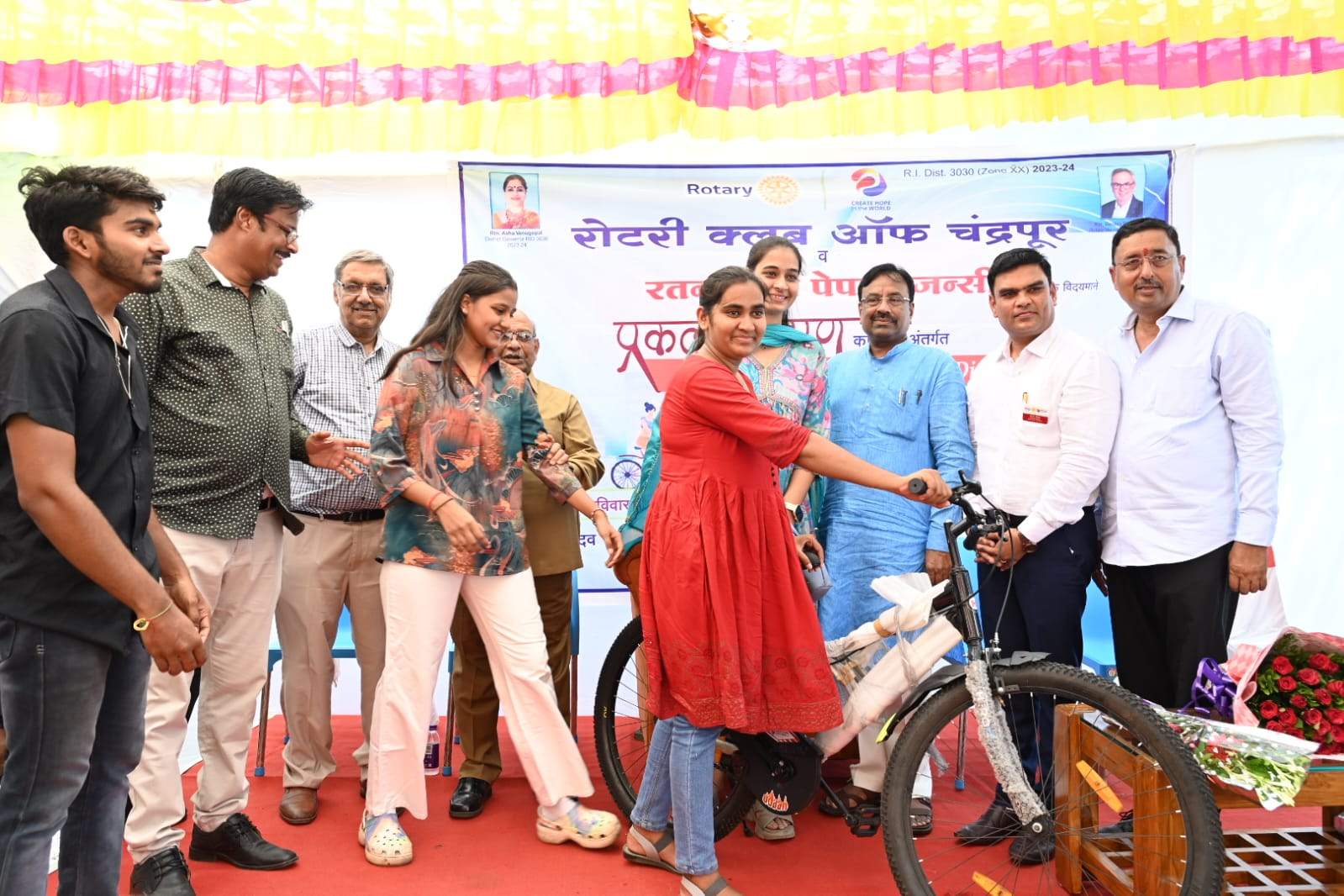 रोटरी क्लब ऑफ चंद्रपूर आणि रतन न्यूजपेपर एजन्सीच्या संयुक्त विद्यमाने उड्डाण प्रकल्पांतर्गत पहिल्या टप्प्यात वृतपत्र वितरकांना ६५ सायकलचे वितरण करण्यात आले. यावेळी रोटरी क्लब ऑफ चंद्रपूरचे अध्यक्ष अनुप यादव, डॉ. विजय आईंचवार, रतन न्यूजपेपर एजन्सीचे जितेंद्र चोरडिया, एमआयडीसीचे अध्यक्ष मधुसुदन रुंगठा, रोटरी क्लबचे सचिव कुंजबिहारी परमार, डॉ. गोपाल मुंधडा, डॉ. अशोक वासलवार, अरुण तिखे, रविंद्र जुनारकर, नवीन चोरडिया, सार्वजनिक संस्थांचे पदाधिकारी आदींची प्रमुख उपस्थिती होती.