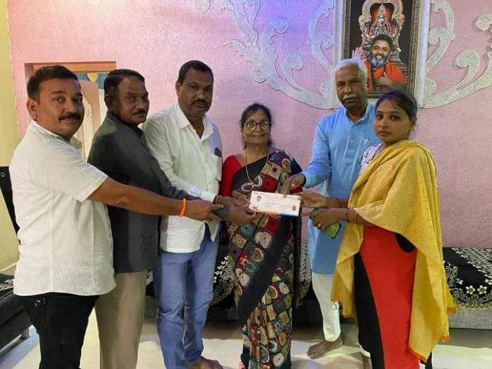 मुरसा येथील लक्ष्मी विनोद बोरकुटे यांना कुटुंबातील पाल्यांना ट्रस्टव्दारे शैक्षणिक दत्तक घेतल्याचे रितसर पत्र देण्यात आले. याप्रसंगी स्व. श्रीनिवास शिंदे मेमोरीयल रविंद्र शिंदे ट्रस्ट चंद्रपूर चे अध्यक्ष प्रा. धनराज आस्वले, कोषाध्यक्ष सुषमा शिंदे, सामाजिक कार्यकर्ते नरेन्द्र पढाल, सुनिल मोरे, अरुण घुगुल आदी उपस्थित होते.
