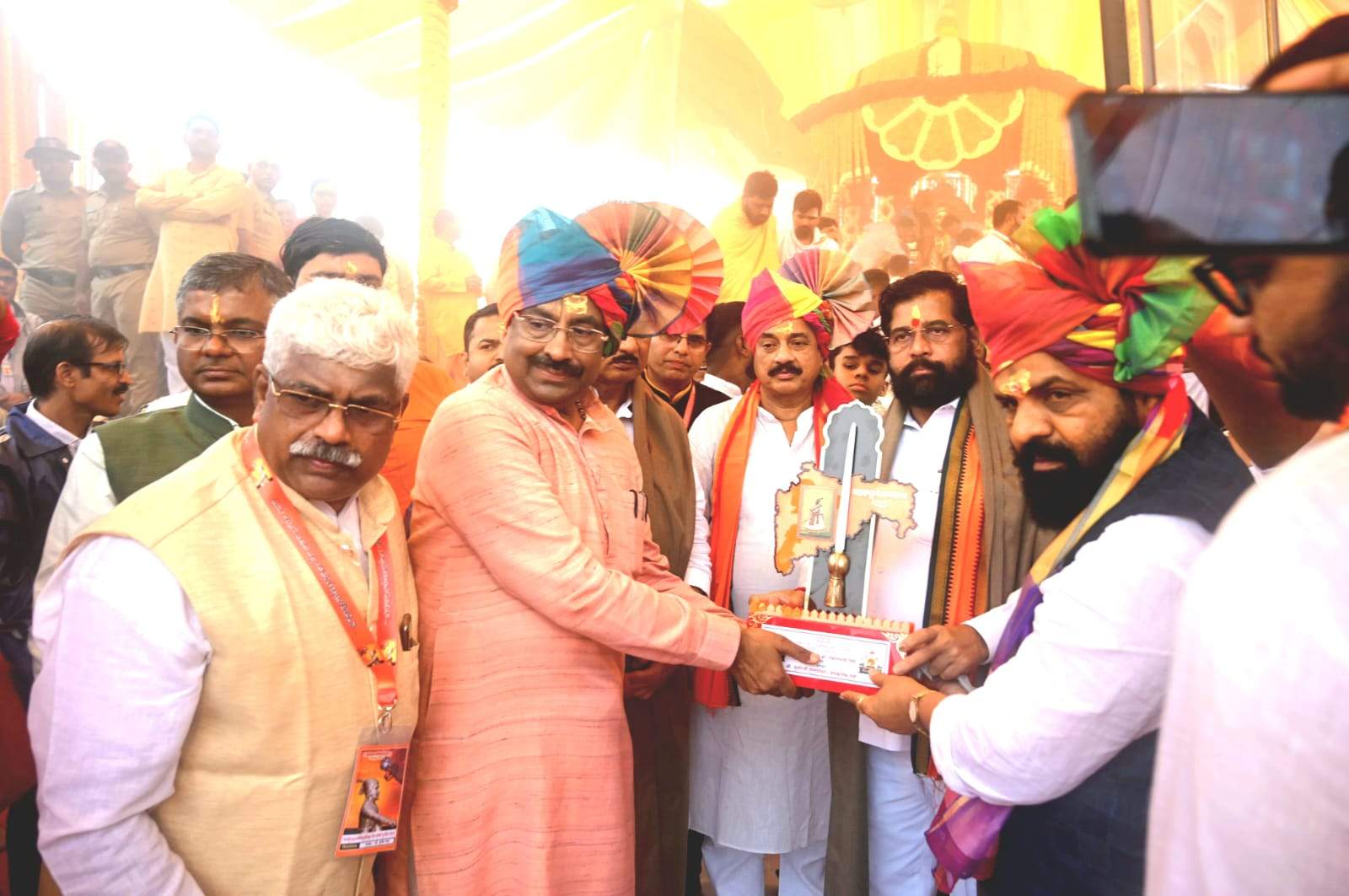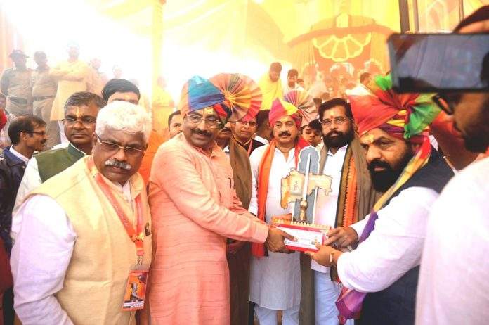यावेळी ना. सुधीर मुनगंटीवार म्हणाले की, केवळ खुर्चीसाठी मोह म्हणून सत्तेत बसलेले हे सरकार नसून छत्रपती शिवरायांची आन बाण आणि शान राखण्यासाठी मुख्यमंत्री एकनाथ शिंदे यांच्या नेतृत्वात खऱ्या अर्थाने रयतेचे कल्याण करण्यासाठी, छत्रपती शिवाजी महाराजांना अपेक्षित असलेले राज्य चालविण्यासाठी आम्ही कटिबद्ध आहोत. शिवरायांचे कर्तुत्व आणि विचार हेच आमचे आदर्श असून मतांसाठी लांगुलचालन पत्करणाऱ्यांपैकी आम्ही नाही.छत्रपती शिवरायांच्या 350 व्या राज्याभिषेक वर्षानिमित्त अनेक महत्त्वपूर्ण उपक्रम राबविण्यात आले याचे मला मनापासून समाधान आहे. प्रतापगडाच्या पायथ्याशी असलेले अफजलखानाच्या कबरी भोवतीचे अतिक्रमण काढण्यात याच सरकारला यश आले याचा मनापासून आनंद होतो. छत्रपती शिवाजी महाराज आमच्या हृदयात आहेत, त्यांचा विचार आणि कर्तृत्व जगाच्या कानाकोपऱ्यात पोहोचवण्याचा आमचा संकल्प आहे. मुख्यमंत्री एकनाथ शिंदे यांच्यासारखा कर्तुत्ववान नेता महाराष्ट्राला मुख्यमंत्री म्हणून लाभला याचा शिवप्रेमिना आनंद आहे, आणि याच आनंदाच्या उर्जेवर आम्ही आमचा संकल्प पूर्ण करणार आहोत असा विश्वास ना. मुनगंटीवार यांनी यावेळी व्यक्त केला.