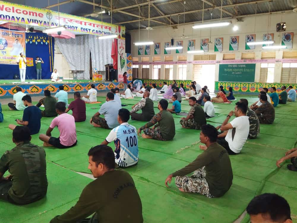 जागतिक योग दिनाच्या निमित्तानं घोट येथील जवाहर नवोदय विद्यालयाच्या सभागृहात भारत स्वाभिमान न्यास तथा पतंजली योग समिती शाखा घोटच्यावतीने योग दिनाचा कार्यक्रम उत्साहात साजरा करण्यात आला.
