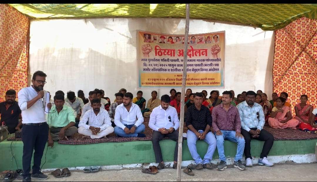 व म्हणून तत्काळ ग्रामपंचायत चे सचिव यांच्येवर कारवाई करावी व दिनांक ०२ जानेवारी २०२५ रोजी झालेल्या बैठकीत नंतर मा. उपविभागात अधिकारी यांनी दिलेल्या लेखी अभिप्रायानुसार कारवाई करीत ज्या १११ लोकांनी शासन नियमानुसार रजिस्ट्री केली आहे त्या सर्व नागरिकांचे फेरफार घेण्यास सुरुवात करावी. या मागणीला घेऊन आज गावकऱ्यांनी ठिय्या आंदोलनास सुरुवात केली आहे. तरी जोपर्यंत गावकऱ्यांना न्याय मिळणार नाही तोपर्यंत सदर आंदोलन सुरूच राहणार असल्याचा निर्धार ग्रामस्थांनी केला आहे.