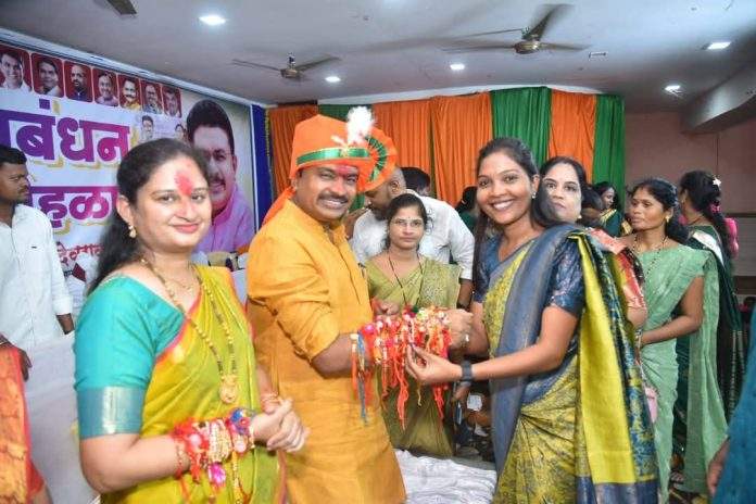 गोंडपिपरीत भाजप महिला मोर्चाकडून आपला देवाभाऊ-रक्षाबंधन सोहळा.