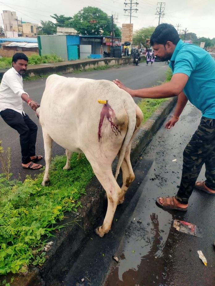 दुसऱ्या दिवशी सकाळी काही नागरिकांनी माहिती दिली की एक गाय पाठीमध्ये चाकू लागलेली फिरत आहे. जागेवर जाऊन पाहिले असता ती गाय त्या पिलाचीच आई असल्याचे समजले. स्थानिक नागरिक व डॉक्टरांच्या मदतीने गायीच्या पाठीतील चाकू काढून तिच्यावर तत्काळ उपचार करण्यात आले तसेच पोलिसांना बोलावण्यात आले. अज्ञात इसमाविरुद्ध गुन्हा नोंदवून गायीला गोशाळेत हलविण्यात आले असून पिल्यासह तिच्यावर पुढील उपचार सुरू आहेत.