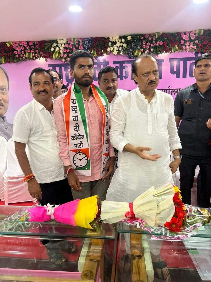 वरोरा:- शिवसेना ( उद्धव बाळासाहेब ठाकरे) विधानसभा प्रमुख युवासेना अभिजित कुडे यांचा राष्ट्रवादी काँग्रेस पक्षाचे राष्ट्रीय अध्यक्ष उपमुख्यमंत्री अजित दादा पवार यांच्या हस्ते प्रवेश. जिल्हा अध्यक्ष नितीन भटारकर, विधानसभा अध्यक्ष विलास नेरकर यांच्या नेतृत्वाखाली राष्ट्रवादी काँग्रेस पक्षात प्रवेश केला. अभिजीत कुडे यांची ग्रामीण भागात चांगली पकड आहे. नागरी माढेळी भागात त्यांनी नेत्र तपासणी शिबीर, मोफत शस्त्रक्रिया, आरोग्य तपासणी शिबीर, रस्त्यासाठी अनेक आंदोलन करून रस्त्यांचे काम केले. लोकांच्या मनात त्यांची जागा निर्माण केली आहे. अभिजित कुडे यांच्या पक्ष प्रवेशामुळे राष्ट्रवादी काँग्रेस पक्षाची ताकद वाढली आहे. लवकरच सर्व मित्र परिवार यांचा जाहीर प्रवेश होणार आहे.