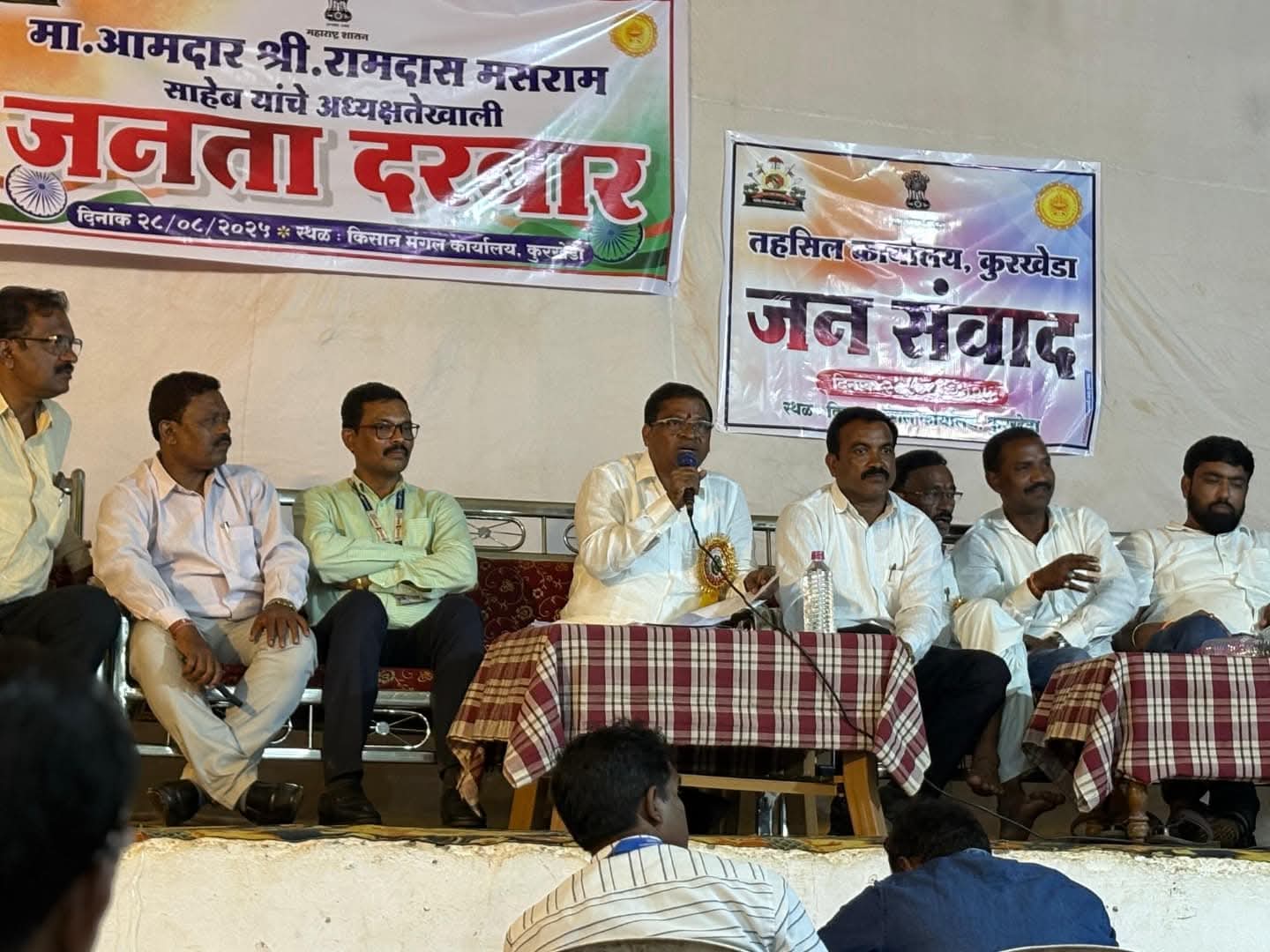 यावेळी सतीनदीचे रखडलेले पूलाचे व राष्ट्रीय महामार्गाचे बांधकाम, नगरपंचायत अंतर्गत रखडलेले घरकूल बांधकाम,वनपट्टा शेतीचा सात बारा उतार्यात वारसानाचा नोंद घेण्यात होणारा विलंब, कूरखेडा येथील दारूबंदी व सार्वजनिक पाणी पूरवठा योजनेचे गढूळ पाणी, तालूक्यातील प्रलंबीत पांदन रस्त्यांचे कामे,रखडलेले व खड्डेमय रस्ते तसेच तालूक्यात यूरीया खताची टंचाई व शाशकीय दरा पेक्षा अधिक दराने होणारी विक्री,घाटी येथील रखडलेली पाणी पूरवठा योजना नवेझरी येथील शिक्षकाचा प्रश्न यासंदर्भात नागरीकानी प्रश्नाचा भडीमार करीत संबंधित अधिकार्यावर भंबेरी उडविली सांयकाळी ६ वाजेपर्यंत हा जनता दरबार सूरू होता यावेळी आमदार रामदास मसराम यानी संबंधित सर्व अधिकार्याना कामकाजात गती आणत नागरीकांचे समस्या प्राधान्य क्रमाने मार्गी लावण्याचे निर्देश दिले याप्रसंगी तहसीलदार राजकूमार धनबाते कांग्रेस तालुका अध्यक्ष जिवन पाटील नाट जिल्हा उपाध्यक्ष जयंत पाटिल हरडे माजी जि प सदस्य प्रभाकर तूलावी माजी जि प सदस्य नंदभाऊ नरोटे माजी प स सभापती गिरीधर तितराम देसाईगंजचे माजी प स सभापती परसराम टिकले माजी उपसभापति श्रीराम दूगा माजी उपसभापति नवनाथ धाबेकर,उबाठा ता.प्रमूख आशिष काळे माजी नगराध्यक्ष आशाताई तूलावी,सागर वाढई तसेच गावागावावरून आलेले ग्रामपंचायत पदाधिकारी नागरीक विविध विभाग प्रमुख अधिकारी कर्मचारी मोठ्या संख्येत हजर होते.