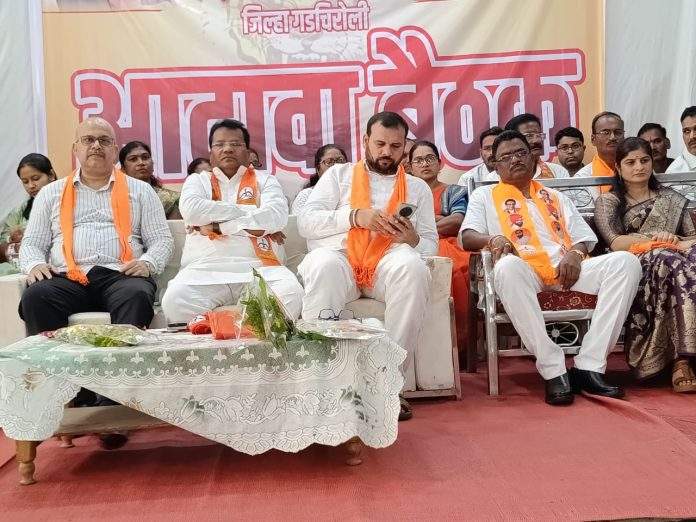 मा.आशिषजी देसाई साहेब शिवसेना पूर्व विदर्भ समन्वयक आणि मा.माजी आमदार सहसरामजी कोरेटे साहेब शिवसेना लोकसभा संपर्क प्रमुख ( गडचिरोली- चिमुर क्षेत्र) यांचे प्रमुख उपस्थितीत गडचिरोली येथील फग्शन हाल मध्ये,दिनांक २ सप्टेंबर २०२५ रोज मंगळवारला,मा.संदिपजी ठाकूर शिवसेना जिल्हा प्रमुख (गडचिरोली- आरमोरी विधानसभा क्षेत्र) आणि मा.पुंडलिकजी येवले सर शिवसेना जिल्हा प्रमुख (ओबीसी/व्हीजेएनटी) गडचिरोली जिल्हा यांनी शिवसेना आढावा बैठकीचे आयोजन केले होते.आगामी स्थानिक स्वराज्य संस्था,नगर परिषद,नगर पंचायत निवडणुकांच्या पार्श्वभूमीवर शिवसेना पक्षाची संघटनात्मक बांधणी करून,राज्य शासनाच्या विविध लोककल्याणकारी योजना आणि महिला सक्षमीकरणासाठी राज्य शासनाच्या विविध योजना शेवटच्या घटकापर्यंत पोहचविण्यासाठी शिवसैनिकांनी प्रयत्न करा,आगामी निवडणुकीमध्ये शिवसेना ही सत्तेमध्ये सहभागी होण्यासाठी प्रयत्न करा. असे आवाहन मा.आशिषजी देसाई साहेब यांनी शिवसैनिकांना केले.मा.सहसरामजी कोरेटे साहेब शिवसैनिकांना मार्गदर्शन करतांना म्हणाले,पक्षातील हेवेदावे विसरून सर्व जण एकत्र येऊन शिवसेना पक्षाची ताकद येत्या निवडणुकांमध्ये दाखवून देत,सत्तेत शिवसेना पक्षाचे वाटेकरी बनण्याची जिद्द शिवसैनिकांनी ठेवावी असे आवाहन त्यांनी शिवसैनिकांना केले.