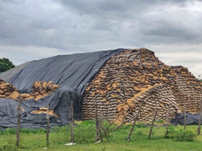 अहेरी:-शेतकऱ्यांनी घामाचे शिंतोडे उडवून, उन्हातान्हात मेहनत करून उत्पादित केलेले धान आज शासनाच्या निष्काळजीपणामुळे उघड्यावर पडून सडत आहे. अहेरी विभागातील सर्व पाचही तालुक्यांतील (एटापल्ली,भामरागड,मूलचेरा,अहेरी,सिरोंचा)खरेदी केंद्रांवर मागील अनेक महिन्यांपासून लाखो क्विंटल धान पडून आहे. सततच्या पावसामुळे या धानाचे मोठ्या प्रमाणावर नुकसान झाले असून ते खाण्यायोग्य राहिलेले नाही.