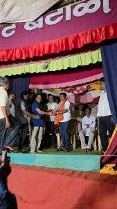 आरमोरी/पाथरगोटा : श्री बाल गणेश उत्सव मंडळ पाथरगोटा यांच्या वतीने आयोजित संगीत नाटक “रुसली साडी माहेरची” या नाटकाचे उद्घाटन मोठ्या उत्साहात पार पडले. या प्रसंगी पाथरगोटा ग्रामपंचायतीच्या स्थापनेसाठी सातत्याने प्रयत्न करणारे माजी आमदार कृष्णा गजबे यांचा मंडळातर्फे शाल, श्रीफळ देऊन सत्कार करण्यात आला.