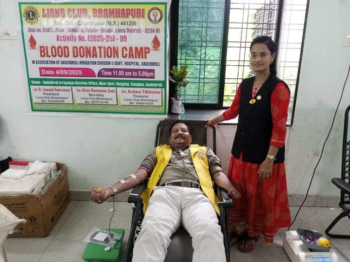 ब्रम्हपुरी  : गडचिरोली पाटबंधारे विभाग व जिल्हा सामान्य रुग्णालय, गडचिरोली व लायन्स क्लब, ब्रम्हपुरी यांच्या संयुक्त विद्यमाने आज गडचिरोली येथे रक्तदान शिबिराचे आयोजन करण्यात आले. या शिबिरामध्ये ५० रक्तदात्यांनी उत्साहाने सहभाग नोंदविला.