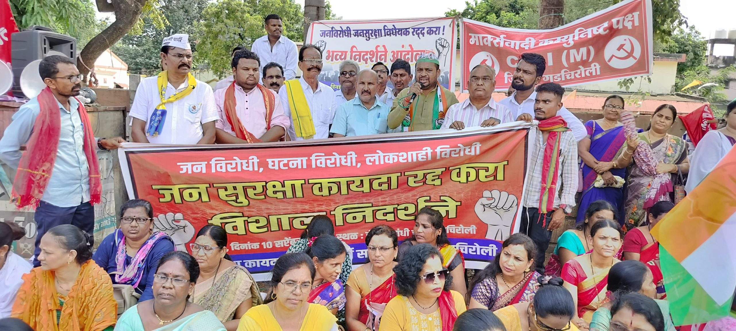गडचिरोलीसारख्या आदिवासीबहुल, संवेदनशील आणि मागास जिल्ह्यातील जनतेवर अशा दडपशाही स्वरूपाच्या कायद्याचा विपरित परिणाम होईल. स्थानिक कार्यकर्ते, सामाजिक कार्यकर्ते, पत्रकार व सामान्य नागरिक यांच्यावर अवाजवी पोलीस नियंत्रण येईल. विरोधी मत मांडणाऱ्या लोकांना अन्यायकारक कारवायांचा सामना करावा लागेल. या विधेयकामुळे नागरिकांच्या संविधानिक हक्कांची पायमल्ली होणार असून, हे विधेयक लोकशाही मूल्यांना धरून नाही. यामुळे महाराष्ट्रात पोलिसी राजवट निर्माण होण्याची शक्यता आहे. त्यामुळे जनतेच्या भावना व लोकशाही मूल्यांचा विचार करता “महाराष्ट्र जनसुरक्षा विधेयक २०२४” तत्काळ रद्द करण्यात यावा या मागणीला घेऊन इंदिरा गांधी चौक गडचिरोली येथे सर्वपक्षीय धरणे आंदोलन करण्यात आले.