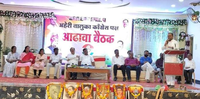 अहेरी तालुका काँग्रेस कमिटीच्या वतीने आयोजित तालुकानिहाय आढावा बैठक गडचिरोली जिल्हा काँग्रेस कमिटीचे जिल्हाध्यक्ष महेंद्र भाऊ ब्राह्मणवाडे,