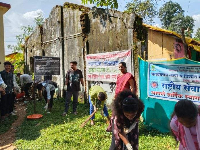 “स्वच्छता ही सेवा” अभियानांतर्गत भगवंतराव कला व विज्ञान महाविद्यालय राष्ट्रीय सेवा योजना विभाग, समर्पण सामाजिक बहुउद्देशीय संस्था व श्री सार्वजनिक युवा गणेश मंडळ एटापल्ली यांच्या संयुक्त विद्यमाने दिनांक 01 ऑक्टोबर 2025 रोजी को-ऑपरेटिव्ह बँक परिसरात “एक दिवस – एक तास – एकसाथ” स्वच्छता मोहीम राबविण्यात आली.