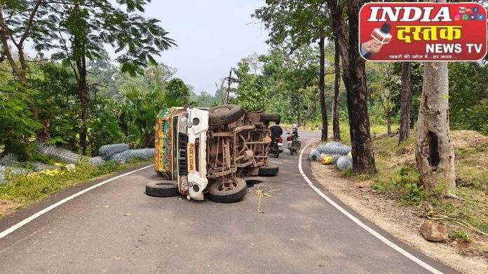 MH 33 T 3274 क्रमांकाची पीक अप वाहन पलटली यात कोणतीच जीवित हानी झाली नाही.