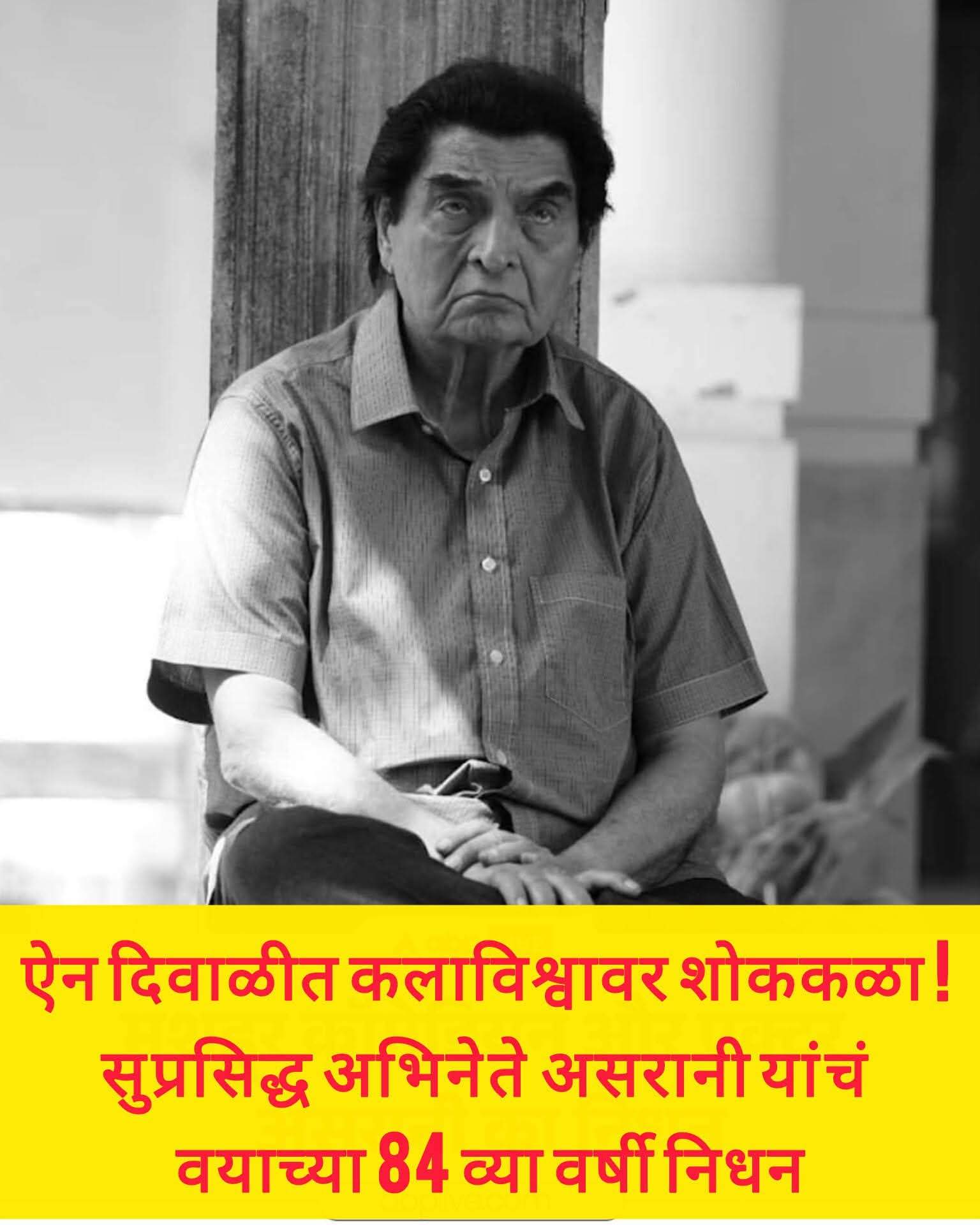 ऐन दिवाळीत कालविश्वावर शोककळा!… सुप्रसिध्द अभिनेते असरानी यांचा 84 व्या वर्षी निधन…