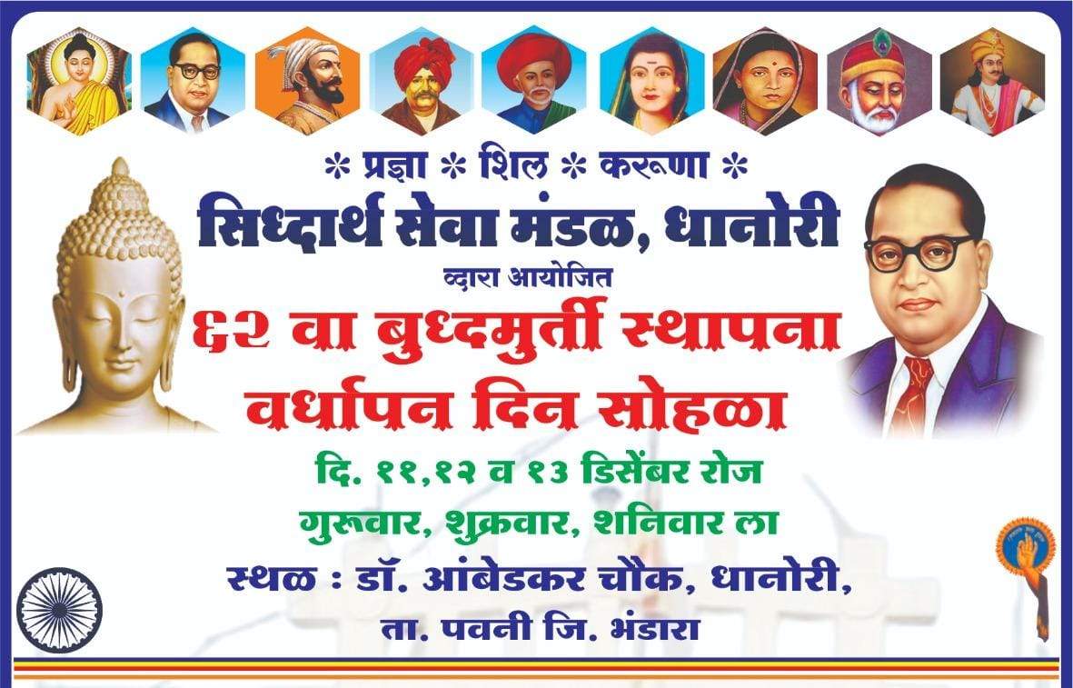 सिद्धार्थ सेवा मंडळ, धानोरी यांच्या वतीने आयोजित ६२ वा बुद्धमूर्ती स्थापना वर्धापन दिन सोहळा येत्या गुरुवार, शुक्रवार व शनिवार म्हणजेच दि. ११, १२ व १३ डिसेंबर २०२५ रोजी मोठ्या उत्साहात साजरा होणार आहे. डॉ. आंबेडकर चौक, धानोरी येथे आयोजित केलेल्या या तीन दिवसीय धार्मिक, सामाजिक आणि प्रबोधनात्मक कार्यक्रमाचे आयोजन करण्यात आले आहे.