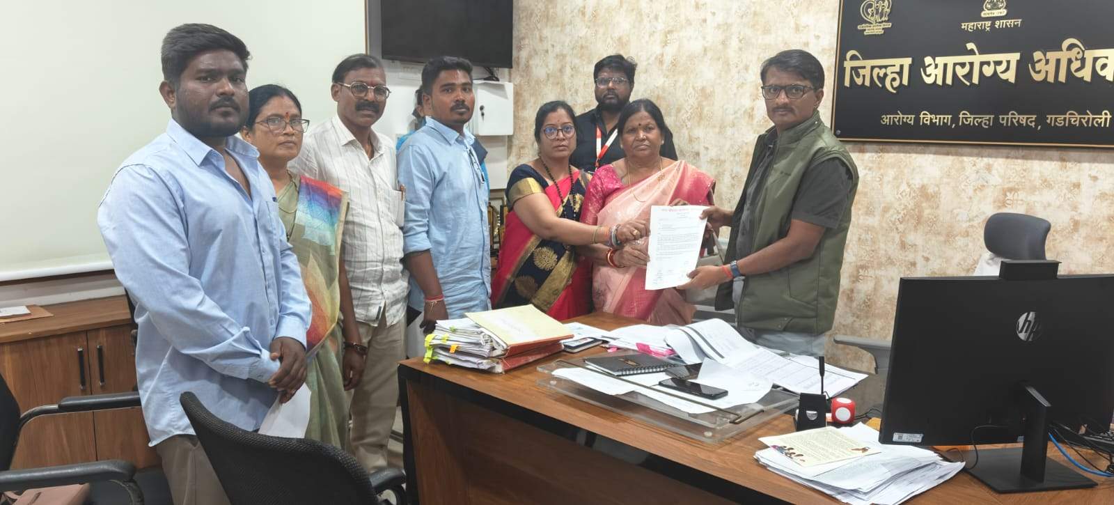 निवेदन देताना बांधकाम सभापती निर्मला कोंडबतुलवार, नगरसेवक राहुल कुळमेथे, नगरसेवक जितेंद्र टिकले, नगरसेविका निर्मला हिचामी हेही उपस्थित होते.