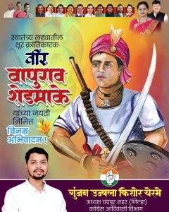 वीर बाबूराव पुल्लेसूर शेडमके की जयंती देशभर के स्वतंत्रता प्रेमियों के लिए एक यादगार दिन बन गई है, जहां उनकी अमर गाथा एक बार फिर से नई पीढ़ी को प्रेरित कर रही है।